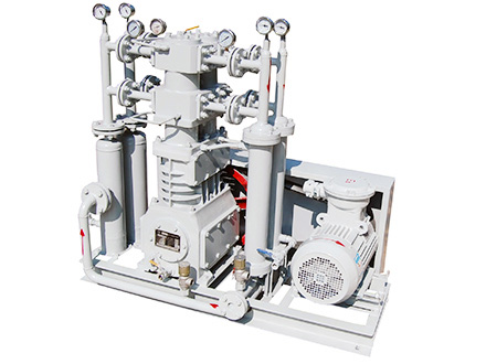 天然氣壓縮機(jī)是我公司自主研發(fā)的新型產(chǎn)品,往復(fù)活塞式結(jié)構(gòu) 。該機(jī)集壓縮機(jī)、冷卻器、電機(jī)、冷卻系統(tǒng)、共用底架等為一體。減少了占地面積,節(jié)省投資 ,方便操作,可為用戶最大限度的創(chuàng)造經(jīng)濟(jì)效益。該產(chǎn)品氣缸 、填料部件為無油潤(rùn)滑,保證了其工作介質(zhì)的純度。曲軸、連桿、十字頭部件為壓力潤(rùn)滑,以保證潤(rùn)滑的可靠性。