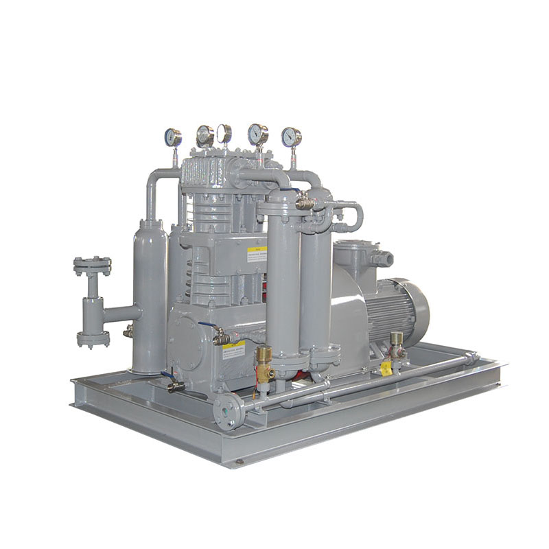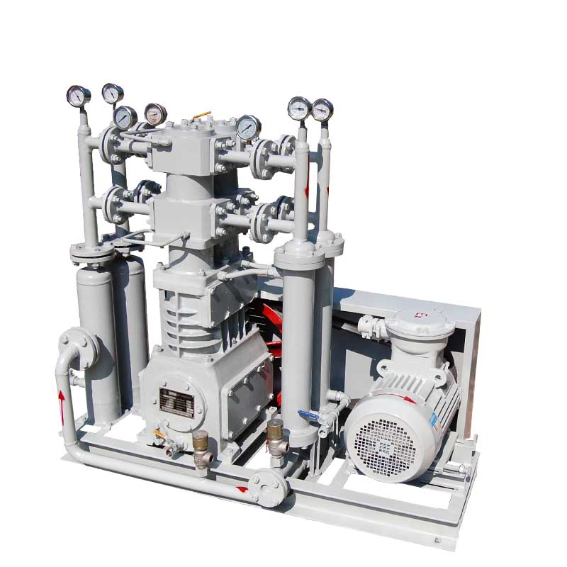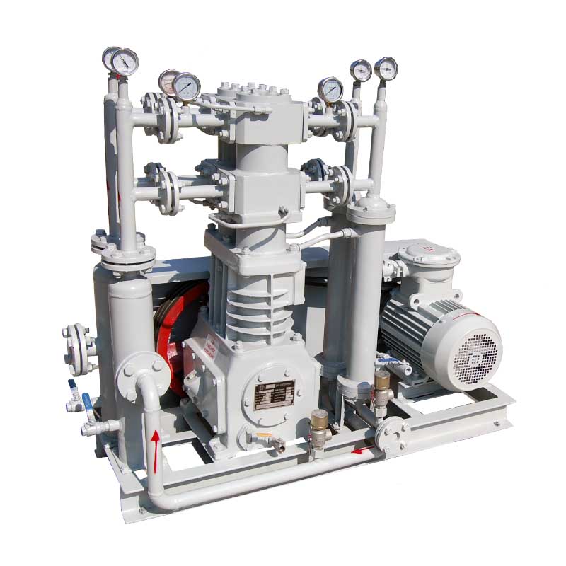 丁烷壓縮機(jī)壓縮機(jī)是我公司新型產(chǎn)品,它集壓縮機(jī)、氣液分離器、安全閥冷卻器、電動(dòng)機(jī)等為一體,成一完整的機(jī)組。具有功能多、體積小、重量輕、功率小、運(yùn)行平穩(wěn)可靠等特點(diǎn),并有良好的安全性能。由于采用獨(dú)特的無油潤滑設(shè)計(jì),氣缸內(nèi)無需用油潤滑,因而不會(huì)對(duì)介質(zhì)造成污染,使被輸送物質(zhì)保持純凈。本機(jī)設(shè)計(jì)成機(jī)組型式,許多管線上的附件都安裝在機(jī)組上,省卻了氣液分離器、穩(wěn)壓罐、安全閥、進(jìn)氣過濾器等,減小了機(jī)房的面積,減少了操作維護(hù)工作量,節(jié)省了投資。